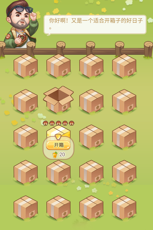 每人每天有【20次】免费的开箱机会,可以开自己家的,也可以去【好友家】。